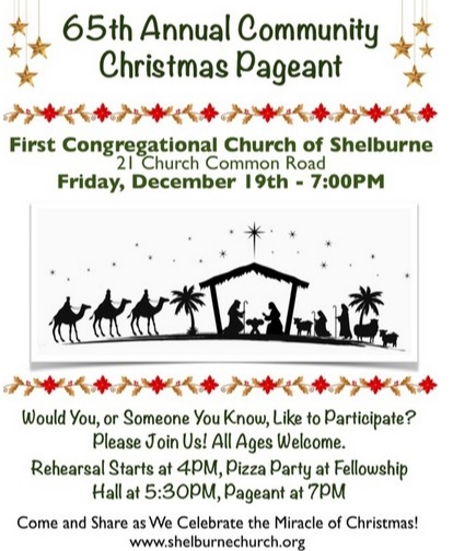 December 19, 2025 - Christmas Pageant at 7:00 pm at the Shelburne Congregational Church